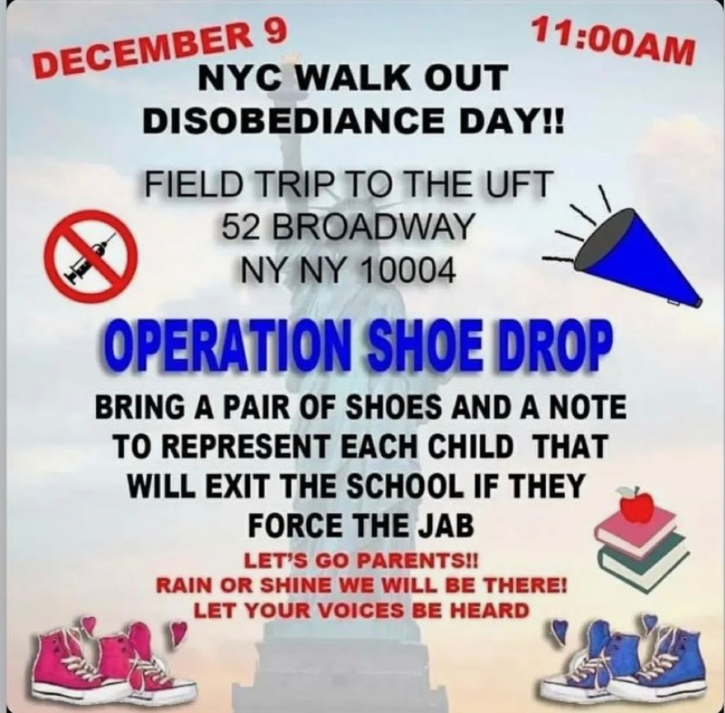 NYC Parents are going to UFT to “drop” the shoes of students who will be leaving NYC Schools if a COVID vaccine mandate happens