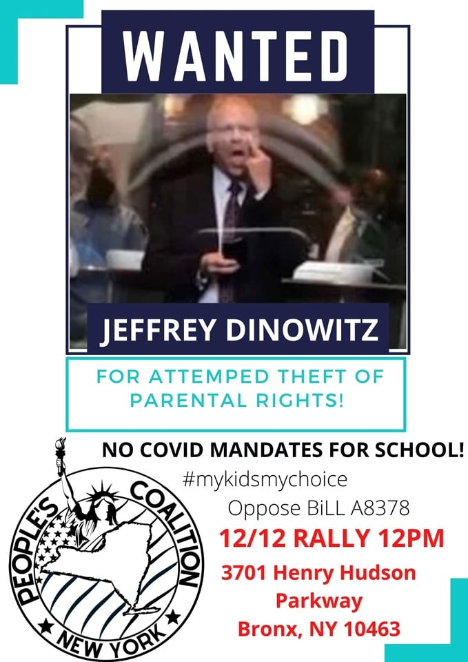 Protest Jeff Dinowitz in the Bronx Sunday 12-12 @ 12 noon Posted byNew York TeachervDecember 10, 2021Posted inCOVID vaccine, ProtestTags:COVID vaccine, TEACHERS FOR CHOICE Share this: Click to share on X (Opens in new window) X Click to share on Facebook (Opens in new window) Facebook Like Loading... Related