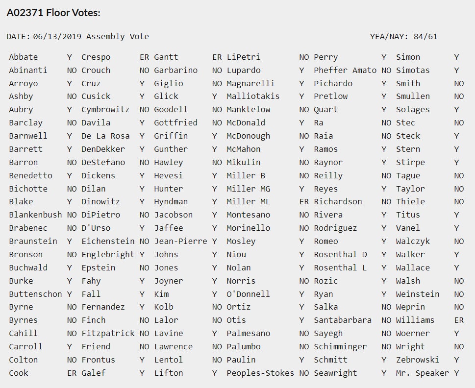 Sayegh, Nader (D-90-Yonkers) Voted “Yes” in committee, then voted “No” on the floor