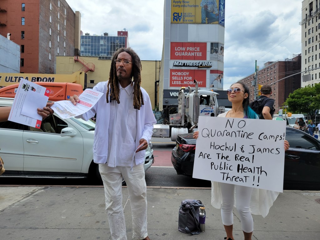 Over 2,000 flyers were handed out titled “STOP GOVERNOR HOCHUL’S “QUARANTINE CAMP” REGULATION.” The conversations we had with community members were remarkable. EVERY PERSON who honestly listened to the facts were blown away that this was occurring in New York. I spoke to a young Black woman wearing a mask walking down 125th St. who was stunned she had never heard of this before. She asked me why her college professor didn’t tell her about this: I told her she needed to educate her professor.
