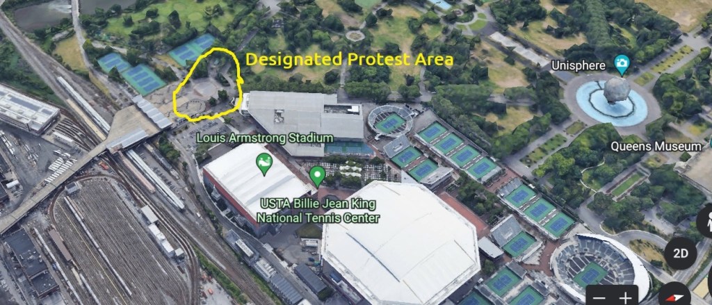 David Dinkins Circle, in the “Designated Protest Area” next to the US Open