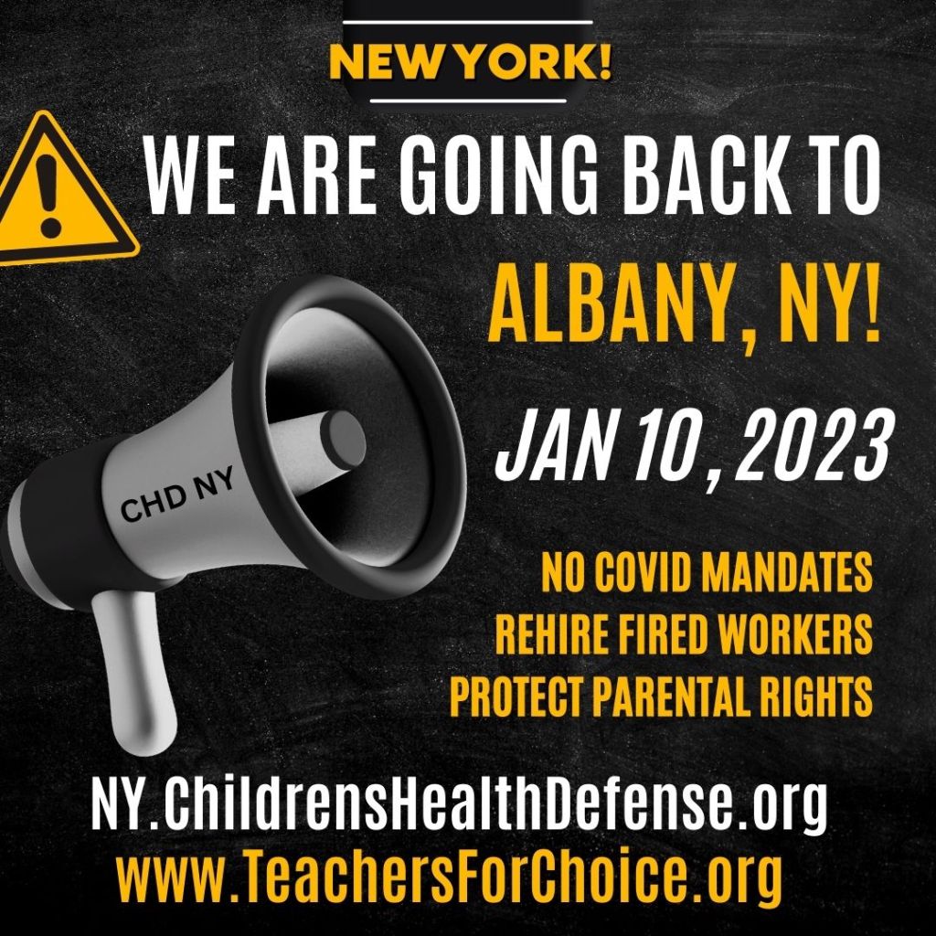 THURSDAY, December 29, 7:30pm ZOOM Meeting for Medical Freedom JAN 10 Rally & Lobby in Albany NY: https://teachersforchoice.org/2022/12/26/zoom-meeting-for-medical-freedom-jan-10-rally-lobby-in-albany-ny/