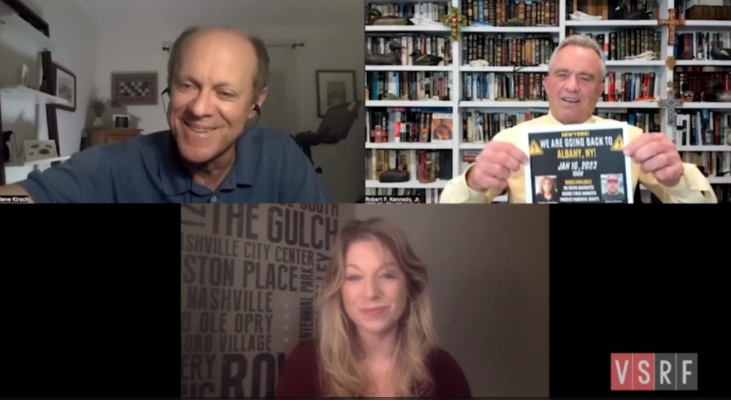At the end of his interview at the 1:14:09 time mark Kennedy holds up the flyer for our rally in Albany, NY on January 10, 2023, and says everyone in the New York area needs to get to this rally. It was an honor to be interviewed by Louisa Clary and Steve Kirsch just after the Chairman of Children’s Health Defense gave us that big endorsement!