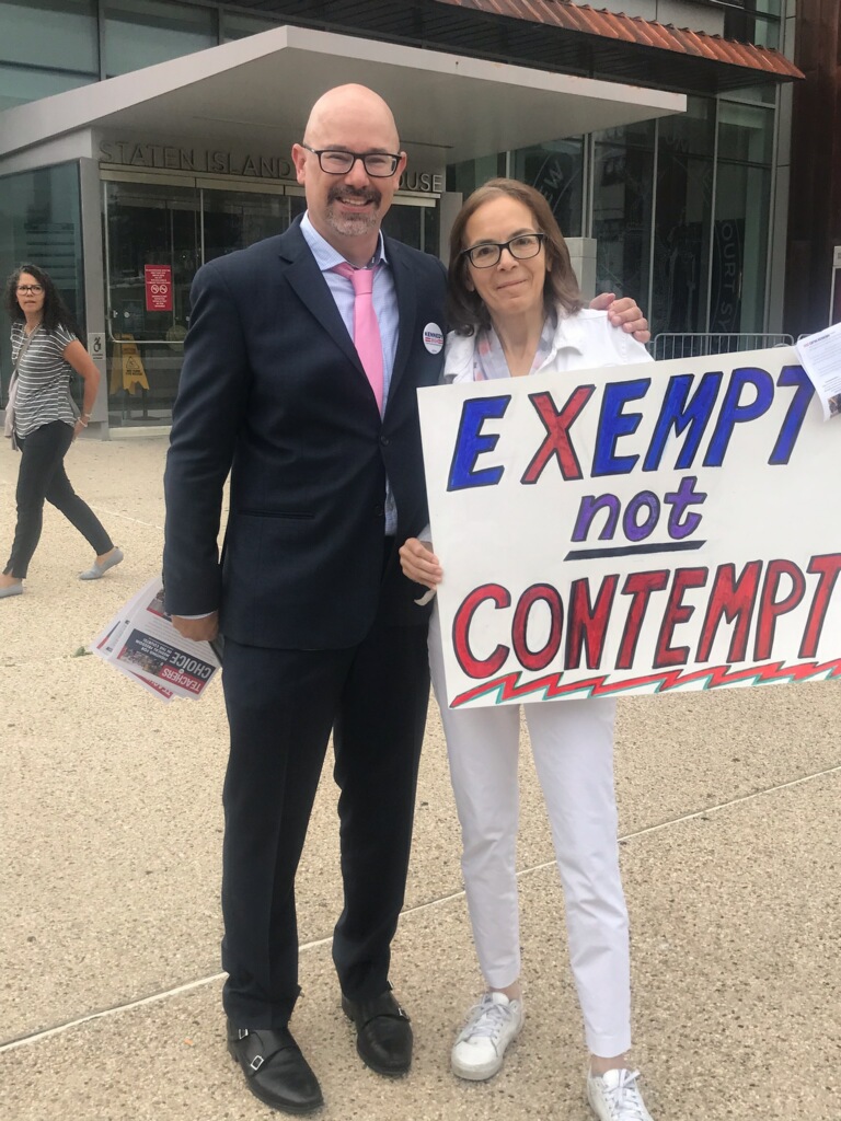 Nearly 300 people showed up to the Richmond County Supreme Courthouse on August 14 to support a Teachers for Choice lawsuit that is backed by Children’s Health Defense. The case was initiated with the support and vision of Robert F. Kennedy Jr, and is titled DiCapua v. City of New York.